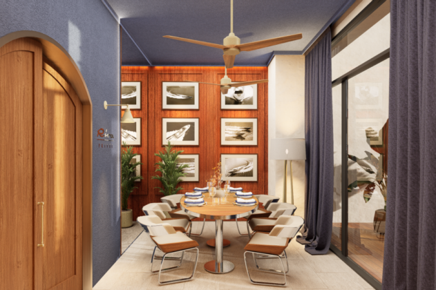 Dizajn interijera inspiriran je stilom pedesetih godina prošlog stoljeća i estetikom Dolce Vita, s karakterističnim materijalima i detaljima poput mahagonija, rebrastog javora, poliranog čelika, kroma i akvamarin tonova. Prostor je oplemenjen autentičnim dizajnerskim elementima poput Aquariva lampi i stolica inspiriranih modelom Aquarama, kao i arhivskim fotografijama koje evociraju nasljeđe i mitologiju brenda Riva. Koncept se temelji na suptilnoj eleganciji i vrhunskoj izradi, bez naglašene ekstravagancije, u skladu s identitetom hotela Monte Mulini.